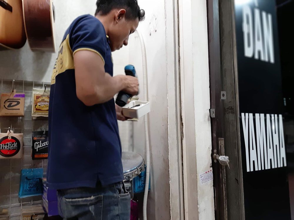II.Hình ảnh thi công lắp đặt camera cửa hàng guitar: